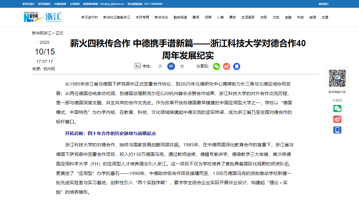 从1985年浙江省与德国下萨克森州正式签署合作协议,到2025年北德研究中心揭牌助力长三角与北德区域协同发展;从两任德国总统亲访校园,到德国总理默克尔在G20杭州峰会点赞合作成果,浙江科技大学的对外合作交流历...