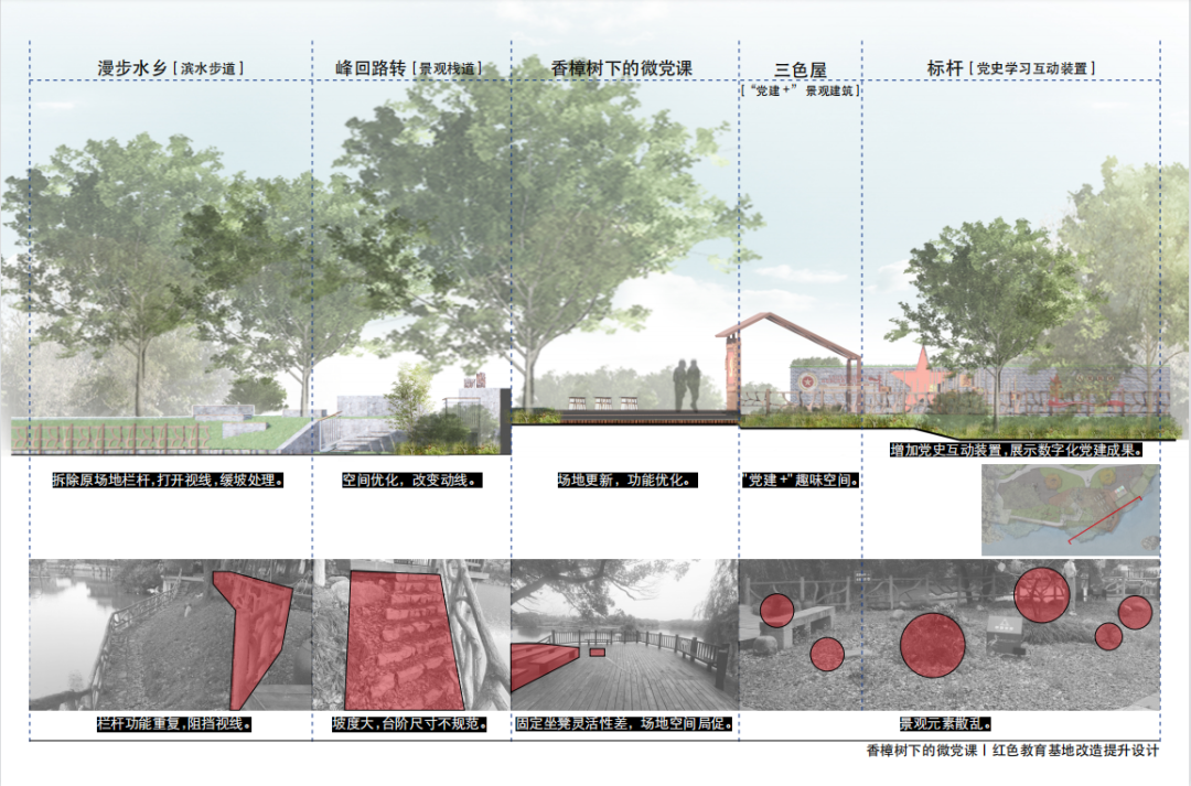 我们根据前期调研结果,从德清村民、村委、游客等多视角观察现场,对德清的区位、周边、使用人群等方面进行分析,明确改造思路从和谐共生为主题入手,在最大程度上保留原生环境的同时新增一些富有人文气息的墙绘和建筑。预案完成后,我们小组又从平面布局、空间及功能、材料工艺、交通流线等方面论证设计方案的合理性、科学性,为设计落地提供技术支持。