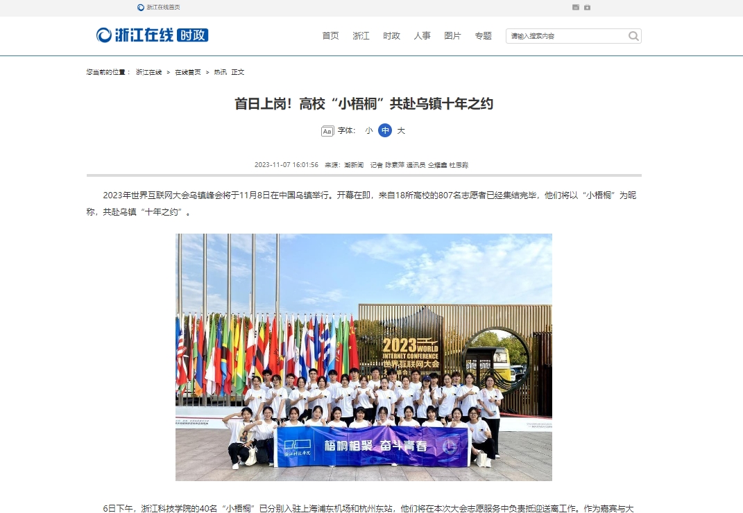 浙江在线:首日上岗!高校“小梧桐”共赴乌镇十年之约