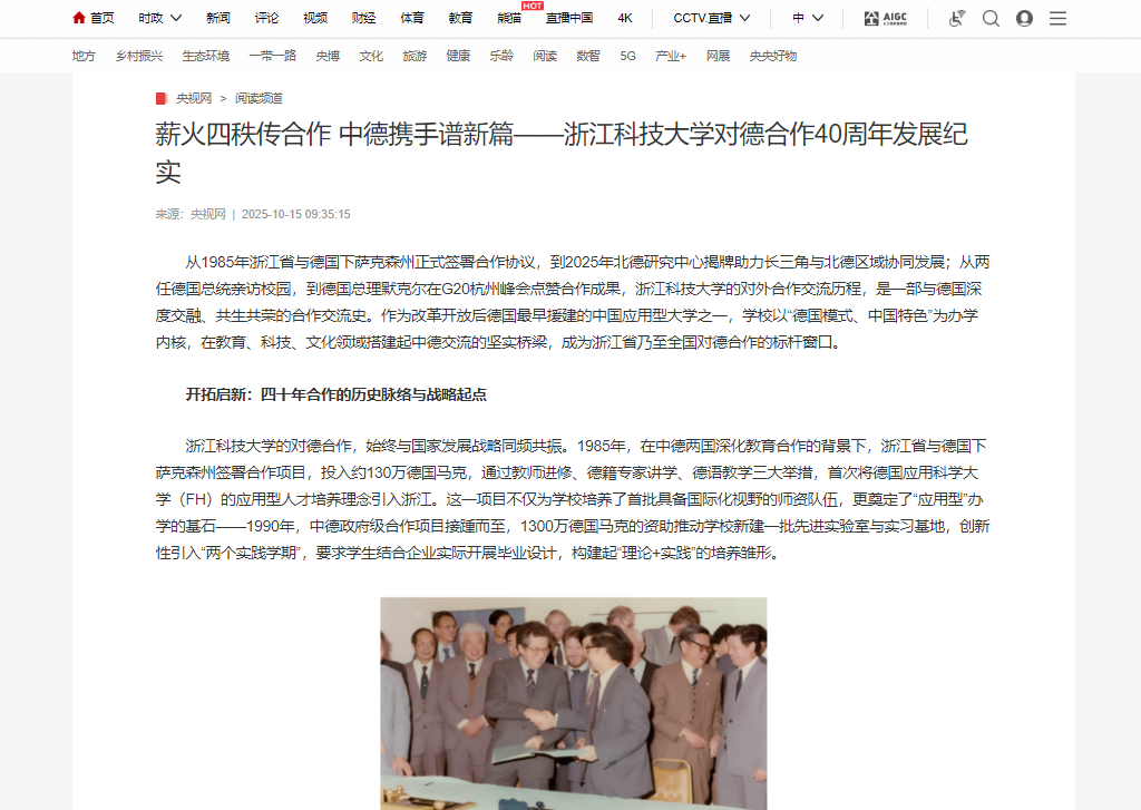 站在四十年的历史节点回望,浙江科技大学的对德合作已成为中德人文交流的生动缩影;面向未来,学校正以更开放的姿态,推动合作向更高质量、更深层次迈进。