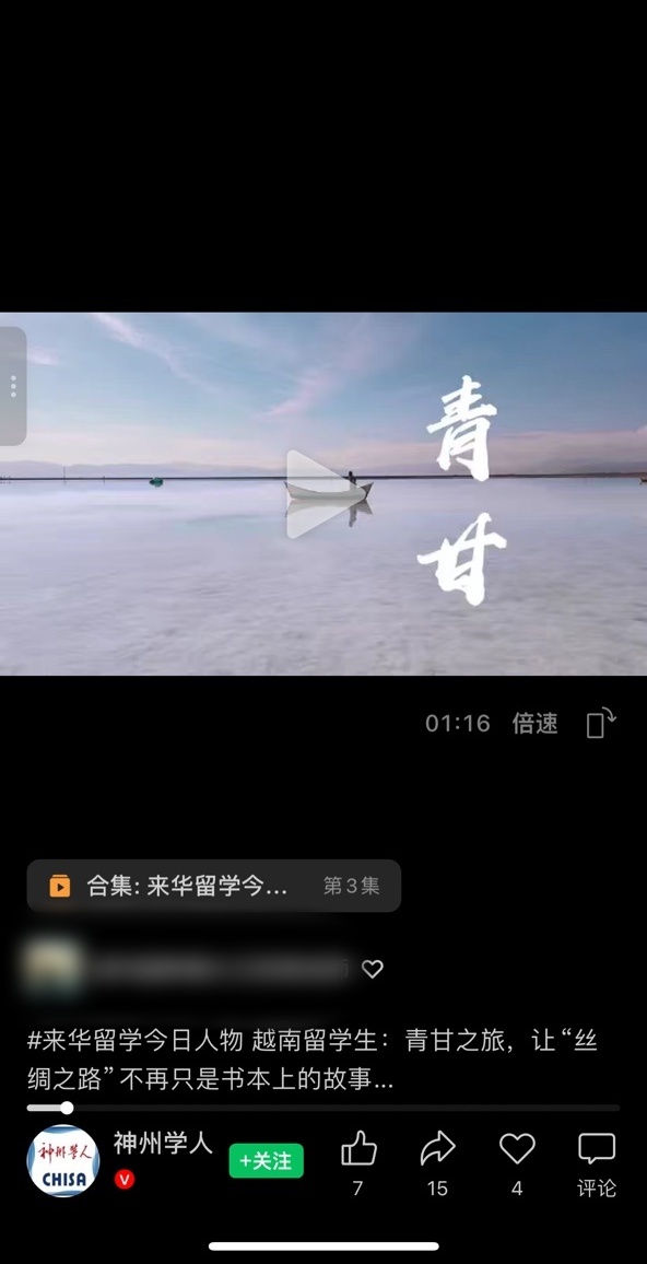 近日,我校国际经济与贸易专业越南籍学生阮如琼的原创视频作品《以汉语为桥,赴青甘之约》,成功入选“来华留学今日人物”作品征集活动,并被“神州学人”微信视频号发布。