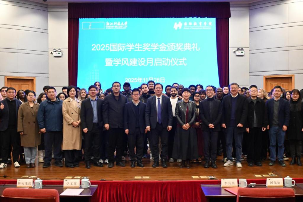 11月28日,2025级国际学生奖学金颁奖典礼暨学风建设月启动仪式在小和山校区举行。副校长李其朋出席典礼并致辞。相关职能部门和二级学院负责人、教师代表及200余位国际学生代表齐聚一堂,共同见证优秀学子的荣耀时刻。典礼由来自越南的阮氏月英和刚果(金)的Amini同学以中英双语主持。