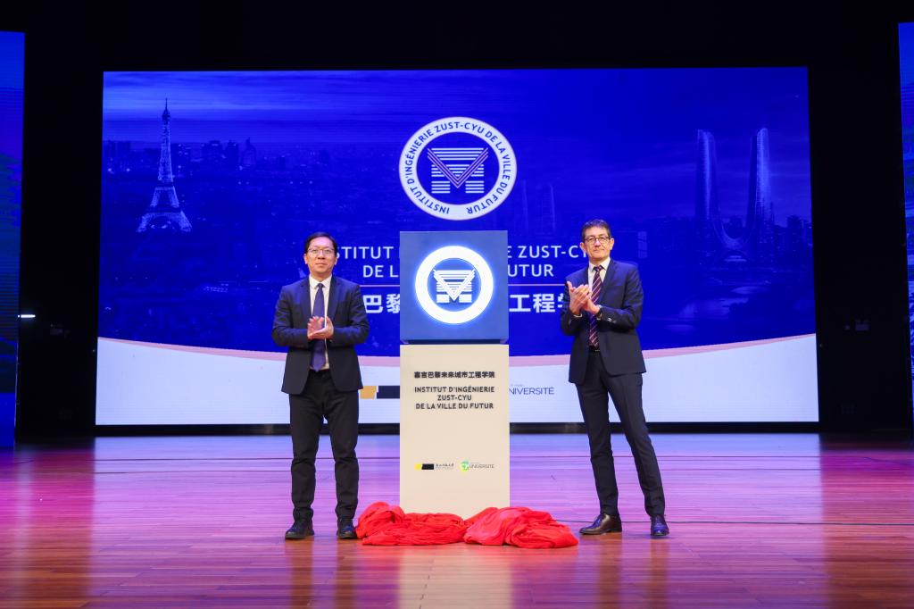 李其朋与布鲁诺·菲奥里奥(Bruno FIORIO)共同为“浙江科技大学塞吉巴黎未来城市工程学院”揭牌。