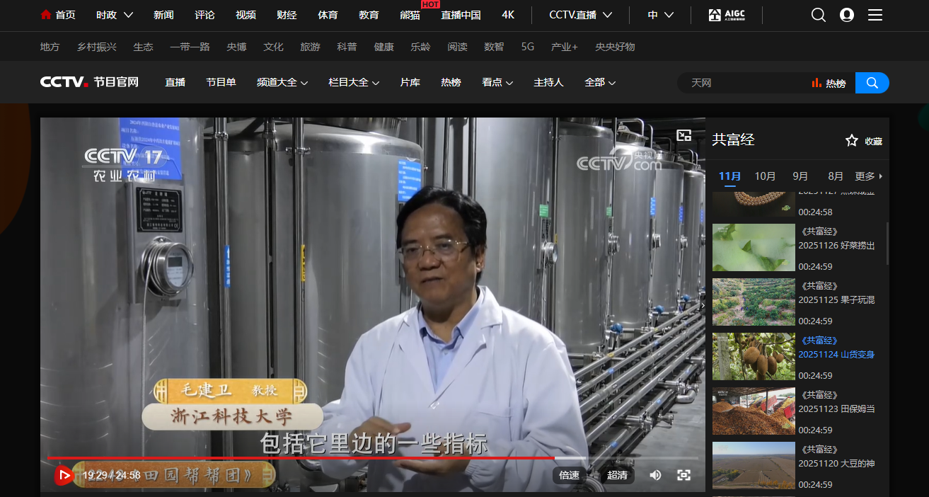 央视17套《共富经》栏目以《山货变身巧赚钱》(点击观看)为题,聚焦位于武陵山区腹地的重庆酉阳县特色产业发展,记录了生化学院毛建卫教授团队和企业家深入武陵山区考察,以及企业产品生产与技术升级的过程。通过校企共同努力,组织广大山区农户种植、采摘,利用先进的生物发酵技术,将武陵山区丰富的刺梨、八月瓜等传统野生山果生物资源,转化为具有高附加值的植物酵素产品的历程。这一精深加工的实践,生动展现了 “山果子”变成“致富果”,带动地方乡村振兴的发展之路。毛建卫教授长期从事农业生物资源生化制造新兴领域研究与教学,致力于农业生物资源的健康功能化利用、全质化利用,主持或参与组织创建中国生物工程学会生物资源专业委员会、中国生物发酵产业协会生物资源提取分会、食药物质专业委员会等相关平台;在植物生物资源发酵健康功能产品方面,参与组织制订了国内首批标准10余项,产业化成果获省部级奖多项。