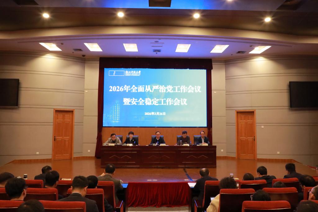 3月26日下午,学校召开2026年全面从严治党工作会议暨安全稳定工作会议,深入学习贯彻习近平总书记关于党的自我革命的重要思想和关于安全稳定工作的重要指示批示精神,全面贯彻落实二十届中央纪委五次全会、省纪委十五届五次全会,全省建设更高水平平安浙江工作会议以及教育系统全面从严治党工作会议的部署要求,总结学校2025年全面从严治党和安全稳定工作,部署安排2026年重点任务。校党委书记赵东福出席会议并讲话。会议由副校长陈平主持。校党委副书记单胜道、张日向,校纪委书记张华良分别作相关工作总结和部署。校党政领导班子成员出席会议。