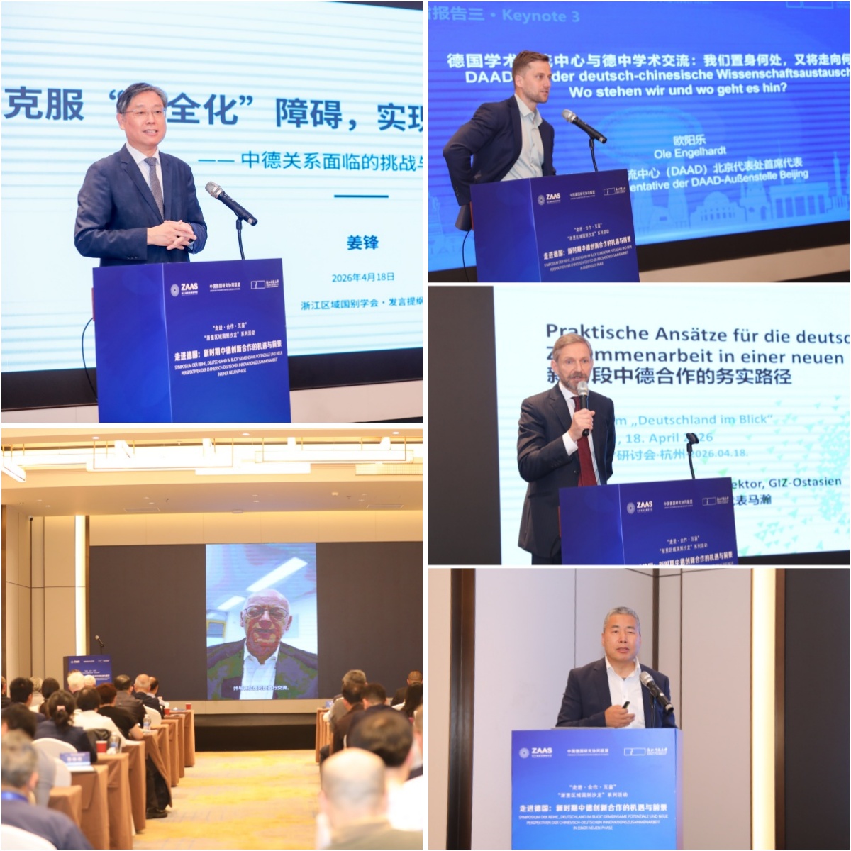 4月18日,“走进德国:新时期中德创新合作的机遇与前景”研讨会在杭州举行。本次研讨会由浙江省区域国别学会、中国德国研究协同联盟和我校主办,我校德语国家研究中心(区域国别研究院)承办,同济大学德国研究中心、浙江财经大学中亚研究院、浙江省发展规划研究院等支持举办。