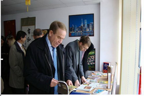 一场大型中国书展拉开了文化活动月的序幕。孔子学院从11月初收到的国家汉办赠送的3000多册图书资料中挑选出部分特色书籍、教材和音像制品展示。精美的古典文学书籍、中国书法、中国画册、武术和中医针灸书籍、中国世界遗产和名山大川介绍及诱人的中国美食书籍让参观者流连忘返。
