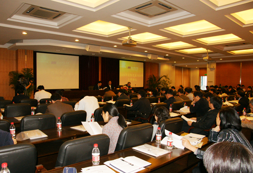 校长杜卫作了专题报告。他首先对学校国际交流与合作工作进行了简要回顾和评价。他说,我校有着长期对外合作办学的优良传统,学校利用国外先进教育理念和模式来改进自身人才培养工作,并在办学理念、学科专业结构、教学模式、师资队伍、科学研究、仪器设备、校园文化等方面取得了较为显著的成效。对于今后的工作,杜卫指出,面对新的形势,国际交流与合作工作要确立新的发展战略,树立起国际交流与合作入“主流”的指导思想,使国际交流与合作直接服务于学科和专业建设上水平、创特色;要坚持并强化“以我为主,合作双赢”的原则。他强调,结合历史与实际,我校国际交流与合作工作要实现三个转变:从被动受援向主动合作转变,充分发挥我校的主动性;从宏观借鉴向引进消化吸收和创新转变,将理念具体化,打造具有我校特色的人才培养模式;从侧重人才培养向人才培养与科学研究并重转变。为此,要紧紧围绕学科专业一体化建设这个抓手来推进国际交流与合作。同时,要加强保障机制建设,为国际交流合作工作提供有力支持,开创国际交流与合作新局面。