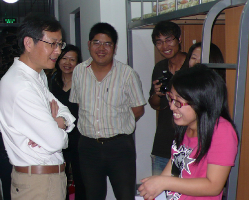 (图为作者校党委书记徐志平与学生亲切交谈)
