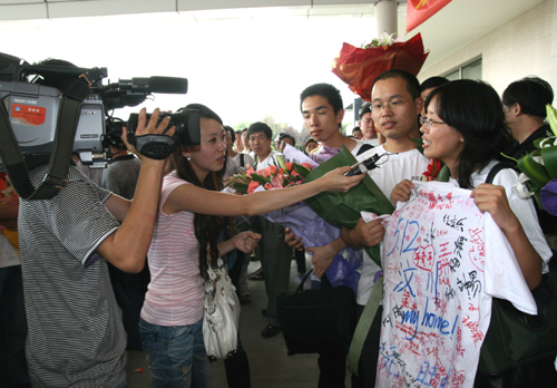 7月3日,浙江赴广元支教团结束为期一个月的支教工作凯旋。我校赛燕燕、俞林鑫、祝江鸿3位教师随团返回。省委教育工委副书记、省教育厅副厅长蒋胜祥到机场迎接。副校长陈根芳率相关职能部门负责人到机场迎接3位教师回杭。