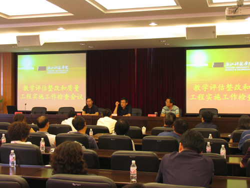 校党委书记徐志平在讲话中指出,今年上半年,全校上下围绕教学评估整改和质量工程实施做了大量工作,各教学单位结合本单位实际进行了深入思考。他强调,下半年,要围绕三项任务继续深化教学评估整改和质量工程实施工作。一是要紧紧围绕国际化背景下的高层次应用型人才培养这一目标要求,以应用型人才培养模式的改革和创新为突破口,进一步深化教学改革。通过改革来解决学校人才培养中的深层次的矛盾和问题;通过教育思想大讨论,深入剖析存在的问题,理清发展的理念思路,深化对办学定位的内涵理解,制定符合学校发展长远目标和本单位实际的规划。二是要狠抓教学管理和教学规范基础性建设,进一步规范日常管理。三是加强领导,根据学校部署做好工作安排,通过责任制落实评建整改和质量工程各项任务,以此推动人才培养质量的全面提高。