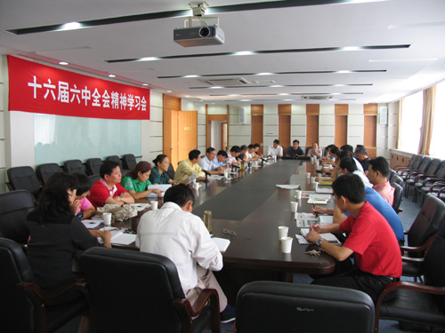 与会人员认真学习了十六届六中全会公报和人民日报社论,了解关于构建社会主义和谐社会的指导思想、目标任务、工作原则和重大部署等。通过学习,大家一致认为,这次全会是在我国改革发展关键时期召开的一次十分重要的会议。全会作出的《关于构建社会主义和谐社会若干重大问题的决定》,是对构建社会主义和谐社会具有重大指导意义的纲领性文件,是在进一步回答“什么是社会主义”、“怎样建设社会主义”的过程中获得的崭新科学论断,体现了我们党理论创新的最新成果,反映了建设富强民主文明和谐的社会主义现代化国家的内在要求,体现了全党全国各族人民的共同愿望。全会把构建社会主义和谐社会作为贯穿中国特色社会主义事业全过程的长期历史任务,并首次与共产主义终极理想目标相联系,提出社会和谐是中国特色社会主义的本质属性,这继承、丰富和发展了科学社会主义理论,开辟了中国特色社会主义事业的新境界。