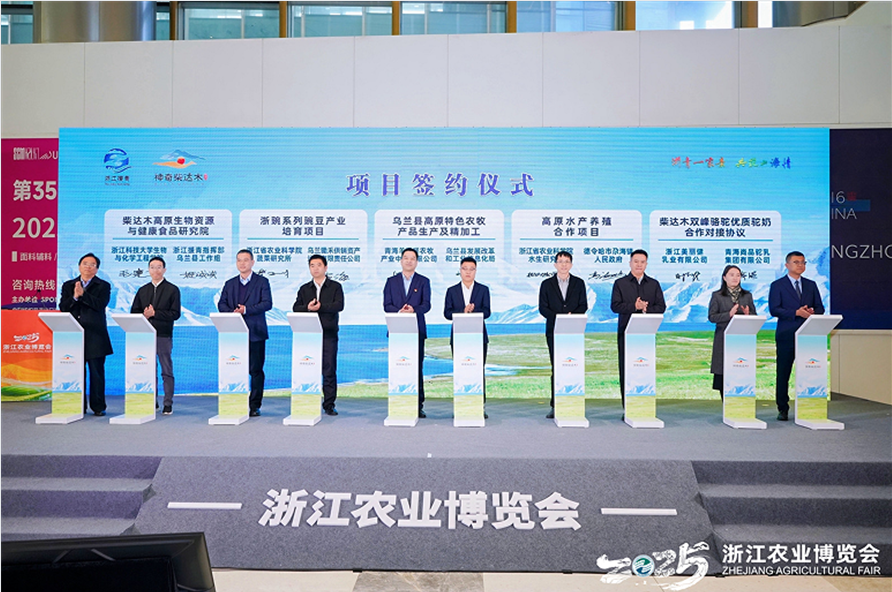 11月23日,浙江省农业博览会在杭州国际博览中心开幕。同期,由青海省农业农村厅、青海省商务厅、浙江援青指挥部主办的“青海绿色有机农畜产品推介会”举行。浙江省农业生物资源生化制造协同创新中心负责人,我校生化学院、科研处相关负责人参加本次活动并签约。