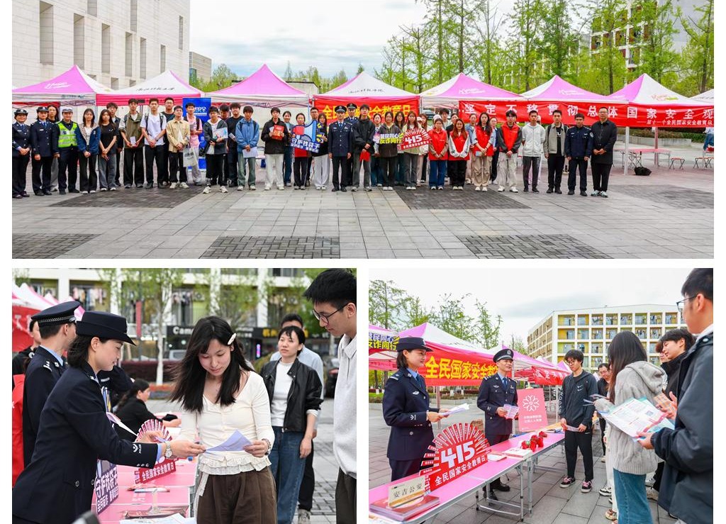 4月9日,安吉校区校警驿站“校安联盟”联动属地多部门,在校区举办宣传咨询服务专场活动,本次活动以“坚定不移贯彻总体国家安全观,共筑校园安全屏障”为主题,整合安吉县委国安办、公安、司法、人社、民政等“校安联盟”成员单位力量,聚焦大学生安全与成长需求,搭建“一站式”宣传咨询平台,实现服务保障零距离。