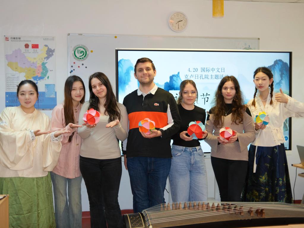 海外志愿者们召集当地中文学习者与文化爱好者共同开展国际中文日庆祝活动。在罗马尼亚克卢日孔子学院,志愿者们结合中华传统民间习俗“谷雨三朝看牡丹”,以手工制作传统花球为特色体验项目,在涂染、塑形过程中感受中式花艺的雅致与吉祥寓意,用花球传递美好祝福,让中文与中华文化在异国他乡绽放光彩,与国内活动遥相呼应、同频共振。