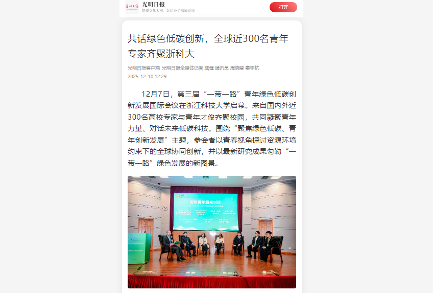 12月7日,第三届“一带一路”青年绿色低碳创新发展国际会议在浙江科技大学举行。来自北京大学、浙江大学、复旦大学、同济大学、比利时根特大学、慕尼黑应用科学大学、孟加拉农业大学、浙江科技大学等境内外高校的...