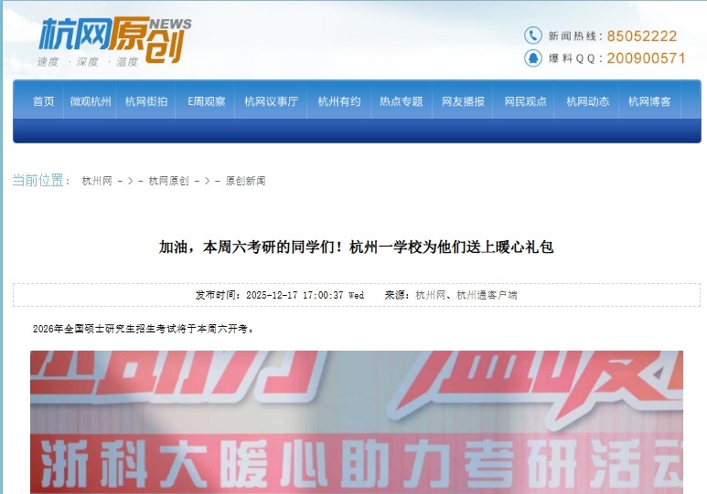 2026年全国硕士研究生招生考试将于本周六开考。“学校居然给我们准备了考研礼包!”12月17日中午,浙江科技大学举行了一场“研途助力‘袋’来好运”考研助力活动,为逐梦路上的考研学生加油鼓劲。不少今年参加考...
