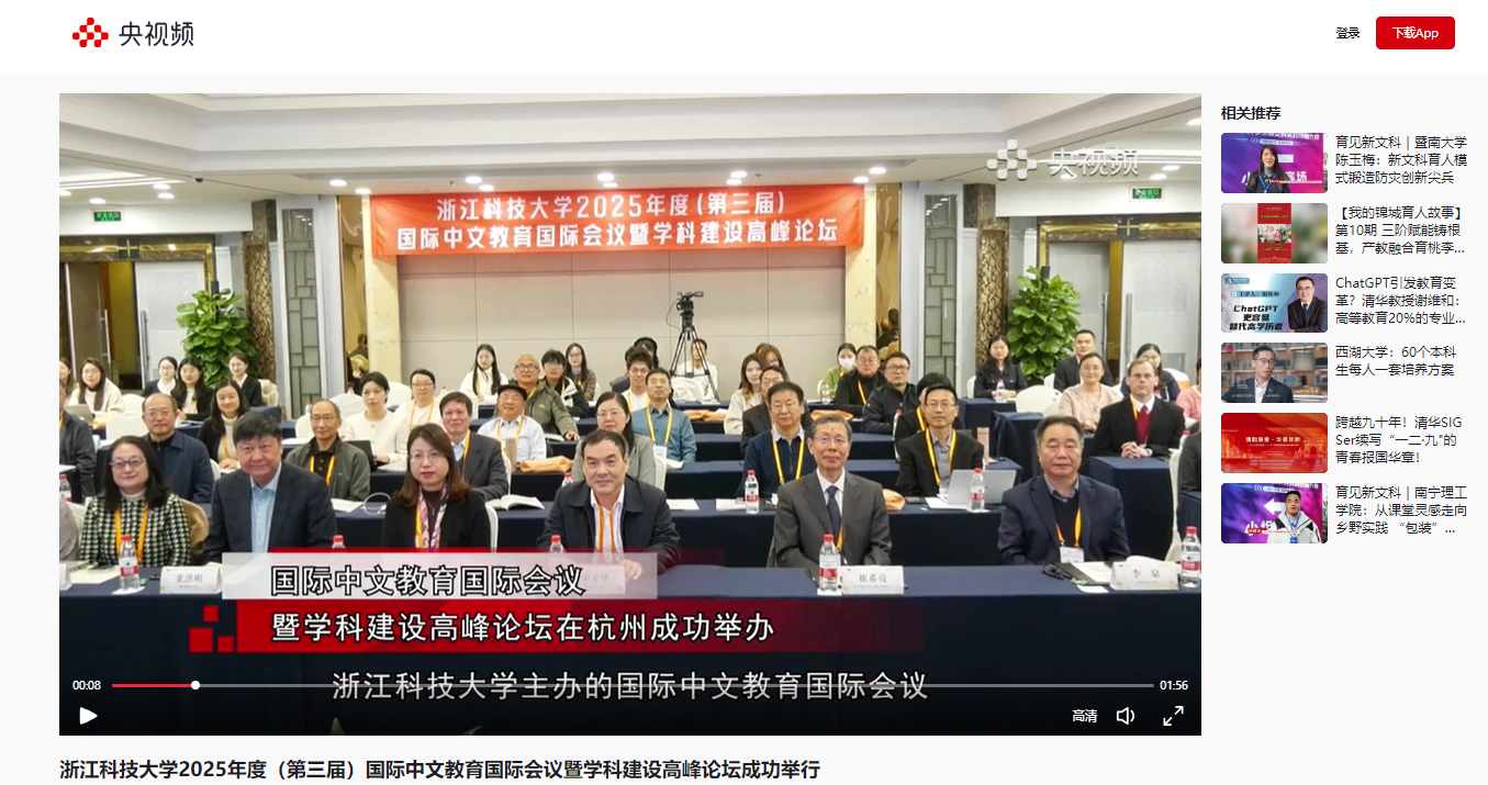 央视频:浙江科技大学2025年度(第三届)国际中文教育国际会议暨学科建设高峰论坛成功举行