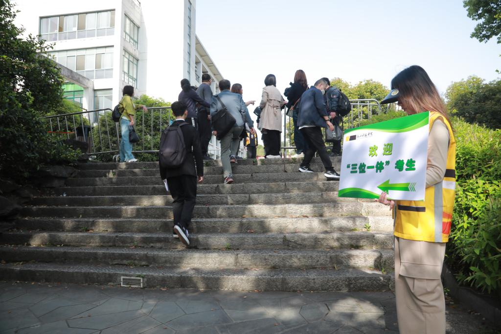 4月16日,浙江科技学院2023年“三位一体”综合评价招生综合测试举行,来自全省各地的考生参加测试。校党委副书记冯军在现场指导相关工作。