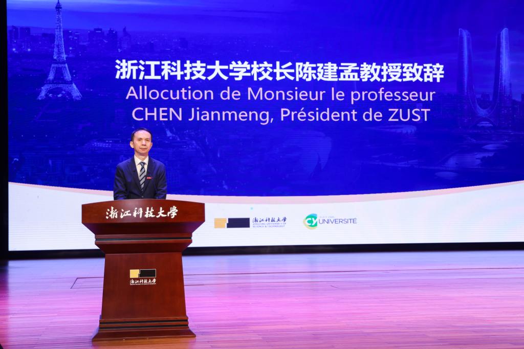 期间,典礼回顾和展示了浙江科技大学与法国塞吉巴黎大学自2010年以来在人才培养、科学研究和文化交流等方面取得的一系列丰硕成果。
