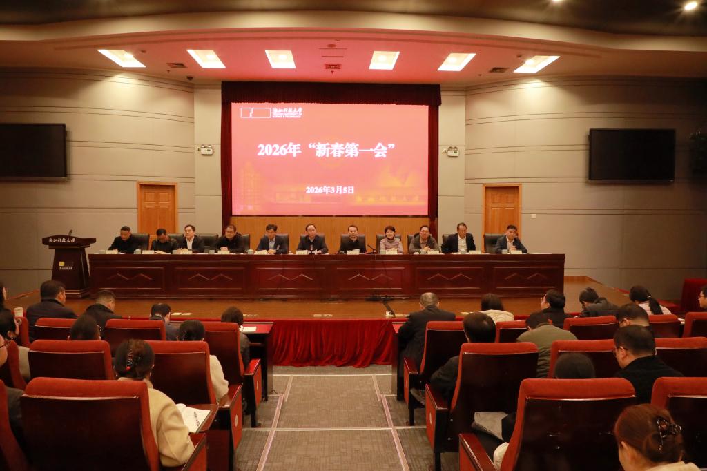 新春启新程,实干开新局。3月5日,浙江科技大学召开2026年“新春第一会”。校党委书记赵东福主持会议并讲话。校长陈建孟作工作报告。学校党政班子成员出席会议。