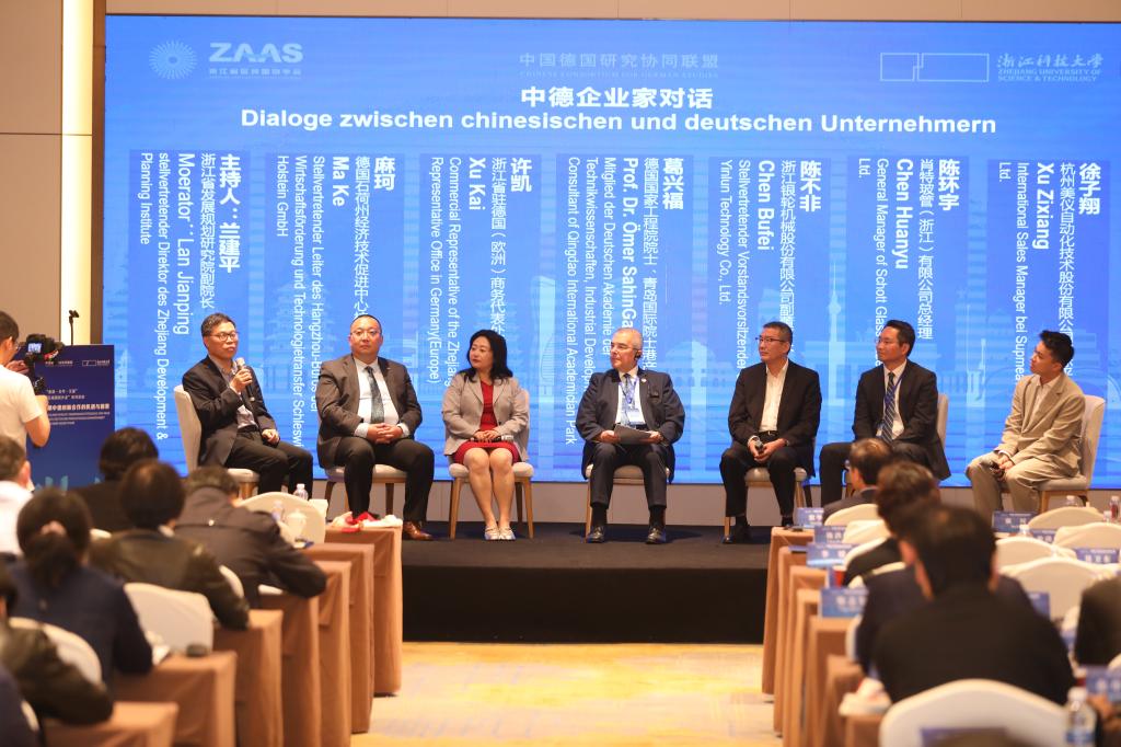 圆桌沙龙“中德企业家对话”环节,浙江省发展规划研究院副院长兰建平主持,德国国家工程院院士、青岛国际院士港产业发展顾问葛兴福,德国石荷州经济技术促进中心杭州办事处副主任麻珂,浙江省驻德国(欧洲)商务代表处商务代表许凯,浙江银轮机械股份有限公司副董事长陈不非,肖特玻管(浙江)有限公司总经理陈环宇,杭州美仪自动化技术股份有限公司国际平台销售经理徐子翔参与对话,围绕新时期中德合作的现实基础、企业出海实践、创新协同路径以及营商环境优化等议题展开深入交流。