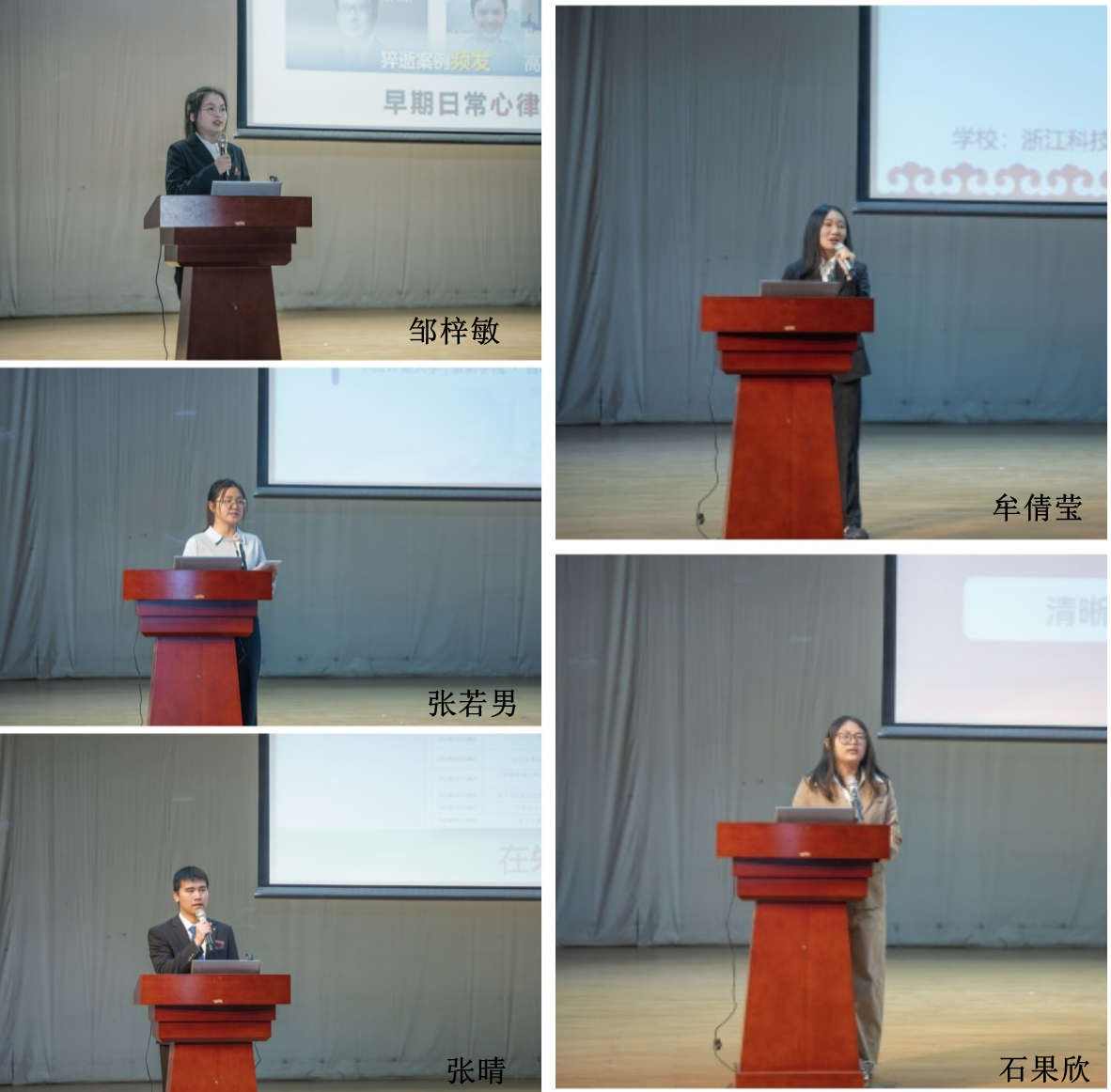 宣讲会上,5位国奖生代表以个人学习成长过程中的亲身经历、感人事迹和鲜活故事,交流自身的所思所想所感,以榜样力量传递青春奋进能量。浙江理工大学研究生邹梓敏结合自身研发心电监测系统的经历,讲述了科研创新路上的执着追求。中国计量大学张若男分享了四年间从“按部就班”到“主动破局”的转变,用考研备考的具体实践,让同学们感受到榜样就在身边。浙江水利水电学院张晴以“跌倒”与“种种子”为喻,讲述了从不敢担任项目负责人、论文被拒自我怀疑,到鼓起勇气锤炼韧性、发表多篇SCI及EI论文的成长历程。浙科大牟倩莹分享“慢下来”的故事,传递出在沉淀中坚守、在坚守中绽放的人生态度。浙科大石果欣则讲述了自己摆脱大一迷茫,积极参与科研项目,最终取得优异学业成绩和国家级赛事一等奖的经历。