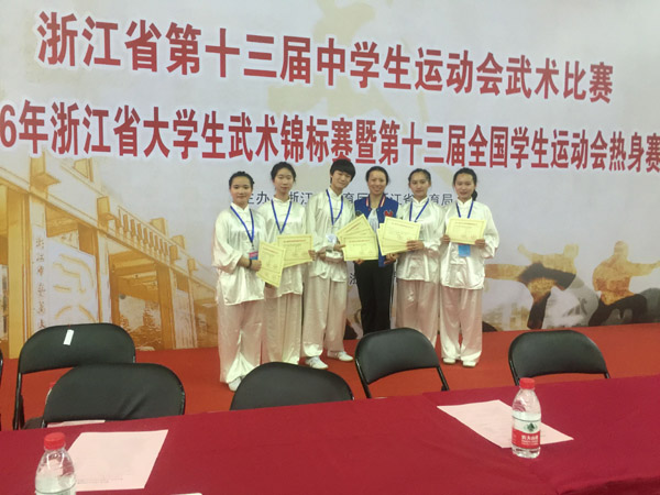 2016年5月12-15日,浙江省大学生武术锦标赛暨第十三届全国学生运动会热身赛举行。我校武术俱乐部五位武术运动员参加比赛,并取得佳绩。