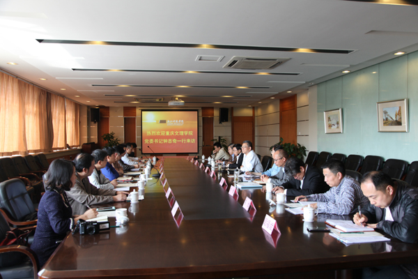 王建华向来访客人介绍了我校办学的基本情况和办学特色,希望双方进一步加强交流与合作,促进共同发展。钟志奇介绍了重庆文理学院的基本情况。双方就校地校企合作,创新创业教育及创业基地建设,专业、学科、平台一体化建设,双师型教师培养、年轻教师深造培养,学科建设及专业硕士点建设等进行了经验分享和探讨。