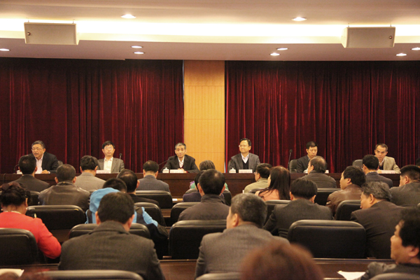 省委第八巡视组副组长宣新瑞及巡视组全体成员、我校领导班子成员出席会议。我校中层正副职、高级专业技术职务人员代表、民主党派负责人,教代会、职代会执委会成员,近期退下来的校级领导等有关人员列席会议。