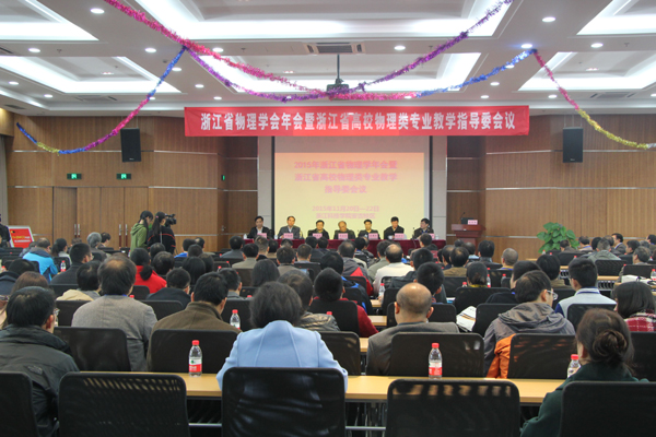 11月21日,浙江省物理学年会暨浙江省高校物理类专业教学指导委会议在我校安吉校区举行。浙江大学唐孝威院士、浙江师范大学龚昌德院士、中国物理学会常务理事罗民兴教授、教育部物理类专业教指委委员盛正卯教授、浙江省物理学会理事长鲍世宁教授、浙江省高等学校物理类专业教指委副主任吴锋民教授等出席会议。校长叶高翔出席会议并致欢迎辞。省内30余所高校220余位物理类专业负责人和教学科研代表参加会议。
