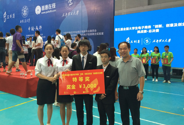 八月下旬,第五届全国大学生电子商务“创新、创意及创业”挑战赛总决赛在成都理工大学举行,我校一支队伍冲进总决赛,最终获得全国特等奖,继去年收获全国一等奖后又有突破。这也是我校学生参加A类竞赛以来所获最高奖项。