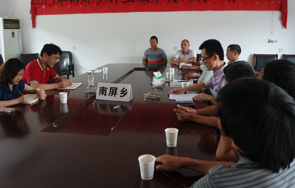 在南屏乡政府会议室,南屏乡乡长介绍了南屏乡的发展近况及扶贫资金使用情况,7名结对村村民分别汇报了2014年扶贫工作进展及带来效益,并对2015年的工作作展望,对学校长期来的扶贫工作表示衷心感谢。