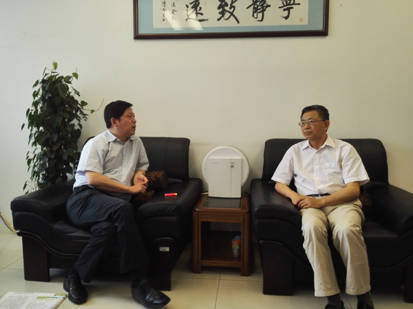 图2王建华与教育部发展规划司副司长郭春鸣交流