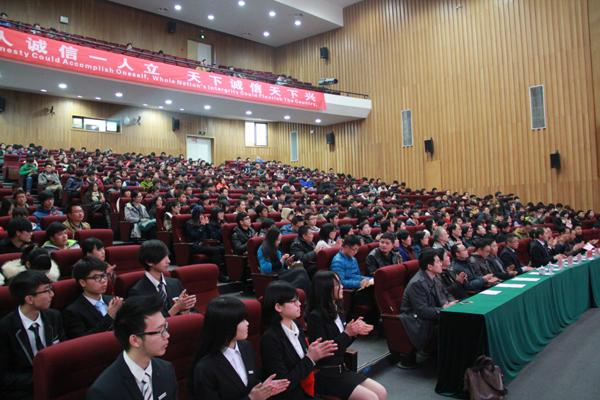 教师代表、第四届“我心目中的好老师”获得者、信息学院马伟锋老师发言,鼓励同学“诚信做人、诚信考试、诚信学术”。参加活动的外教马克也向广大师生发出提醒,诚信对学生的未来很重要,对学校的未来很重要,对中国的未来很重要。