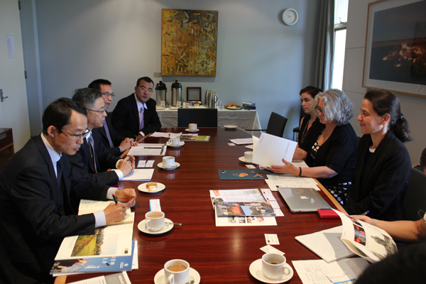 王建华一行与新西兰梅西大学就艺术类专业学生交流及相关合作项目进行友好交谈。双方表示加大沟通力度,逐步推进两校间实质性合作(图3)。