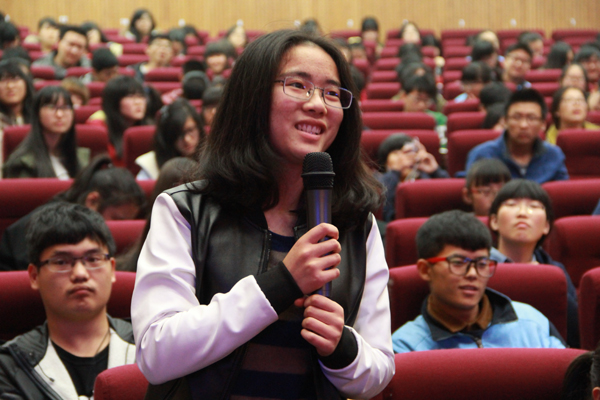 报告引发在座的同学们的共鸣,掌声不断。王建华还与现场同学进行了精彩互动。