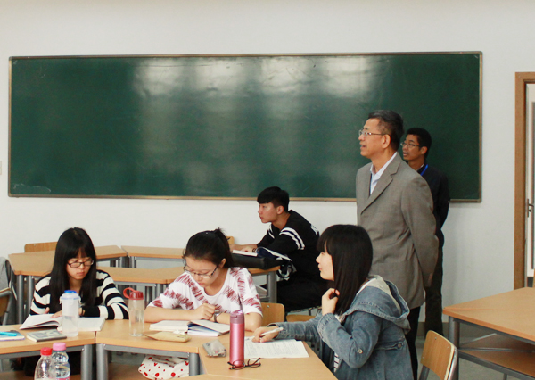 10月13日,2014级新生开始正式上课。一早,校党委书记王建华、校长叶高翔等校领导到安吉校区检查教学情况。