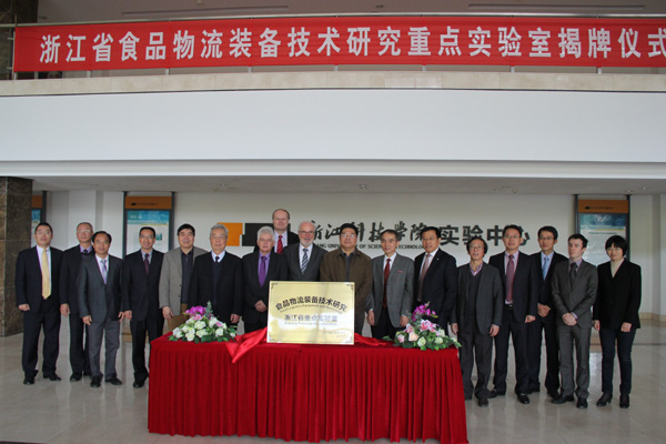 11月17日上午,浙江省食品物流装备技术研究重点实验室揭牌仪式举行。重点实验室学术委员会德方主任、德国国家科学与工程院院士Axel Kuhn教授,实验室学术委员会中方主任、中国物流技术装备业泰斗吴清一教授和我校校长叶高翔、副校长郑友取共同为实验室揭牌。
