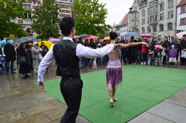 校友日期间,我校大学生艺术团组成的文化交流团在当地举行了多场演出,受到民众欢迎。5日,大学生艺术团在埃尔福特中心广场举行了专场文艺演出,适逢当地下雨,演出仍吸引了数百名德国市民冒雨观看,甚至有人自发从邻近城市特地赶来。雨中,文化交流团同学以高度的敬业精神,演出了浓缩中国民族元素的文艺节目。市民们陶醉于精彩演出的同时,开始关注咨询浙江科技学院情况,有些表达了希望留学的意愿。