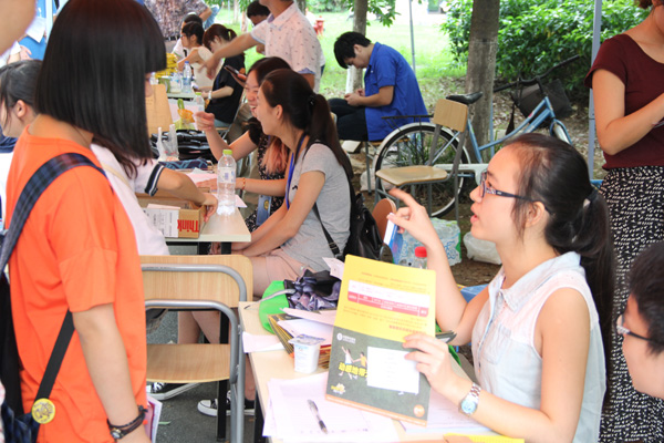 “去年学长学姐也是这么热心地接待我们,今年轮到我们,一定也不能马虎!”穿着各自学院服装的志愿者们似乎约好了似的都这么说。“今年我们人手充足,大家都接不到活儿了,站在这儿干嘛呀?愁啊!”一位学长半开玩笑地说,“要干活,绝不能在寝室楼下站着,都得迎上前,在路中间拦着!”话音未落,就见他冲了出去“抢”行李。