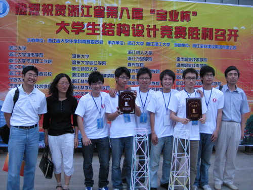 5月15日至16日,省第八届“宝业杯”大学生结构设计竞赛决赛在浙江理工大学举行。我校建工学院派出“科技”、“天行”两支代表队参赛,分获二、三等奖。
