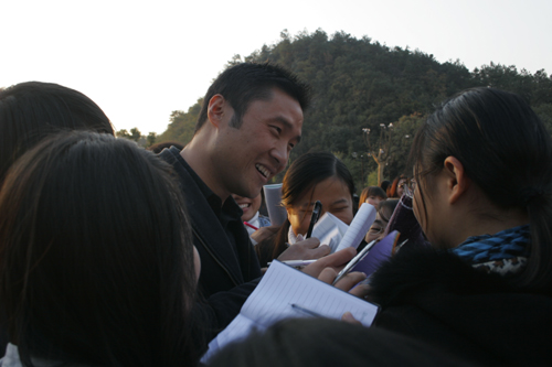 李建设和孟关良分别以“回眸奥运,展望全运”和“我的奥运梦想”为主题作了主题报告。孟关良还回答了现场热情“粉丝”的提问,并为学生签名留念。