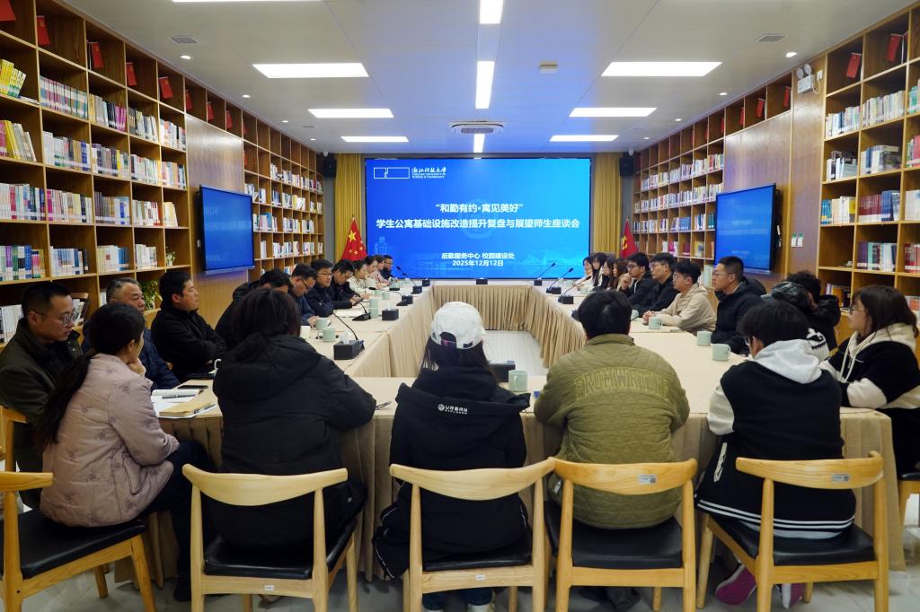 为进一步提升公寓服务质量,营造更加舒适、便捷的居住环境,近日,“和勤有约,寓见美好”师生座谈会举行。后勤服务中心、校园建设处等相关部门负责人及各院系学生代表面对面交流。